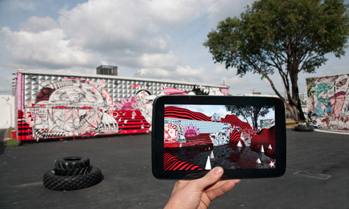 First stop, Miami, current North American epicenter for low-brow and graffiti artists. AR was put in action at the Art Basel event in Miami in 2012. Five murals were digitally augmented with a similar technology to ours- a smartphone recognized the completed piece and expanded on it in a digital layer. One use of this that especially blows my mind was the use of AR with the Shepard Fairey mural that was recently painted over. AR allows visitors, with the proper technology, to view the wall as it once was, preserving an art form that was once limited to days or months to years and years.